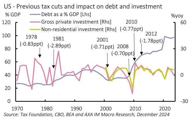 Yet weak governments pose a potential risk. In Germany, elections will be held in February instead of September. But even the probable return of a grand coalition looks unlikely to deliver a major turn in fiscal policy, despite the substantial need for long-term investment. France may suffer further political uncertainty with its government likely to face fresh challenges next year. Nor can we rule out elections in Spain. Weak governments are likely to result in slippage from the relatively sharp fiscal tightening planned for next year. They will hamper the EU response to any US tariffs and would impede reaction to any geopolitical developments involving Ukraine or beyond.