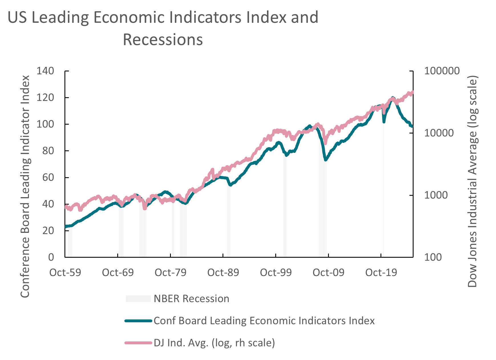 Halloween steht vor der Tür. Wenn Sie sich gruseln wollen, sehen Sie sich doch einmal die folgende Abbildung an. Ich habe eine Version davon diese Woche auf LinkedIn gesehen. Sie zeigt den Frühindikatorindex des Conference Board, Rezessionen in den USA und den Dow Jones Industrial Average. Den Frühindikatorindex gibt es seit 1959. In ihn fliessen die Steigung der US-Zinsstrukturkurve, die Auftragseingänge in der Industrie, die Arbeitslosengeldanträge und das Kreditmengenwachstum ein. Durch KI kann zwar vieles heute anders sein, aber man kann aus der Abbildung durchaus eine baldige Rezession samt Aktienmarktkorrektur herauslesen. Frei nach dem Hexengesang in Macbeth: „Doppelt, doppelt Müh’ und Plage. KI und Preisblase, keine Frage.“